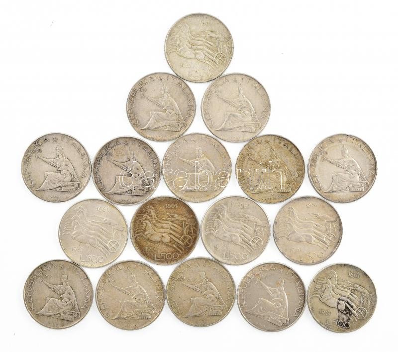 Olaszország 1961. 500L Ag "Olasz egység századfordulója" (17x) T:2,2- Italy 1961. 500 Lire Ag "Italian Unification Centennial" (17x) C:XF,VF Krause KM#99