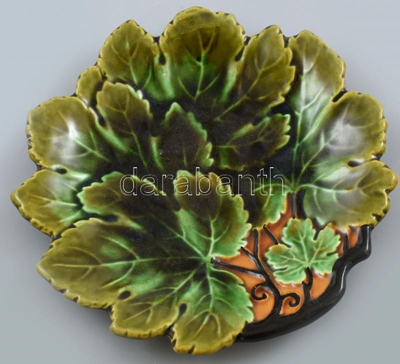 Beschreibung: Körmöcbányai leveles tányér, majolika, kopott, jelzett, d:20cm