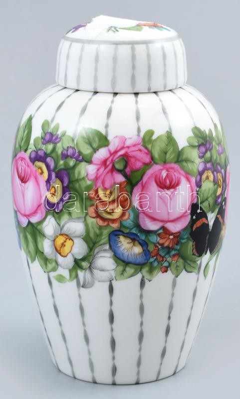 Beschreibung: Nymphenburg urna váza fedeles virágmintás jelzett vizes kézzel festett hibátlan 15 cm