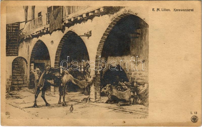 Karawanserei / Judaica art postcard. N.P.G. L 13. s: E. M. Lilien (EK) https://www.darabanth.com/de/417-Fernauktion/417.0/Ansichtskarten/Judaica~1500033/Karawanserei-Judaica-art-postcard-NPG-L-13-s-E-M-Lilien-EK~II2625177