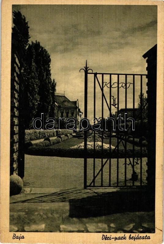 Baja, Déri-park bejárata (EK) https://www.darabanth.com/de/417-Fernauktion/417.0/Ansichtskarten/Ungarn~1500004/Baja-Deri-park-bejarata-EK~II1238669