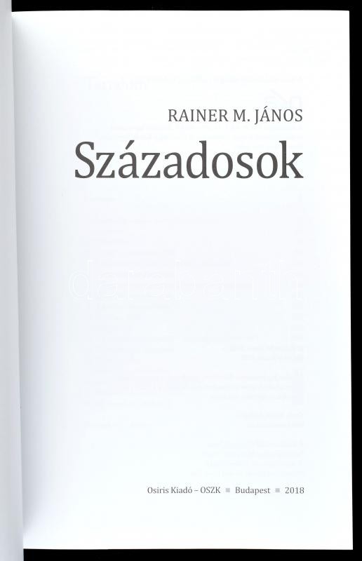 Rainer M. János: Századosok. Bp., 2018., Osiris-OSZK. Fekete-fehér szövegközti fotókkal illusztrált. Kiadói papírkötés.