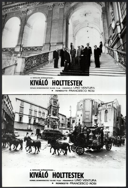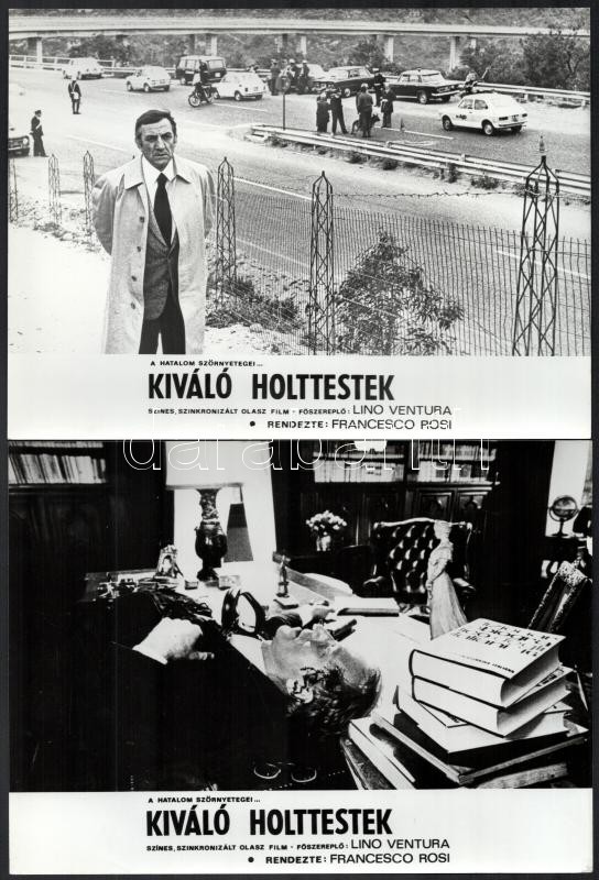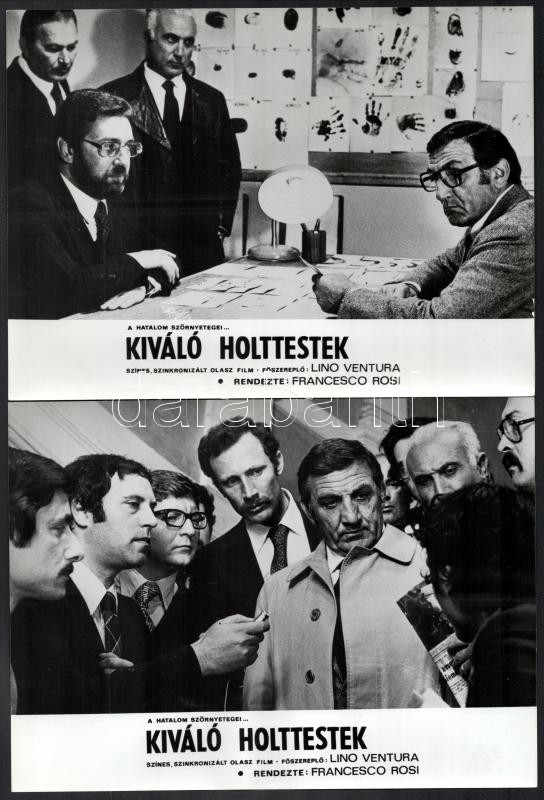 1976 ,,Kiváló holttestek" című olasz film jelenetei és szereplői (köztük Lino Ventura), 13 db vintage produkciós filmfotó, ezüst zselatinos fotópapíron, 18x24 cm