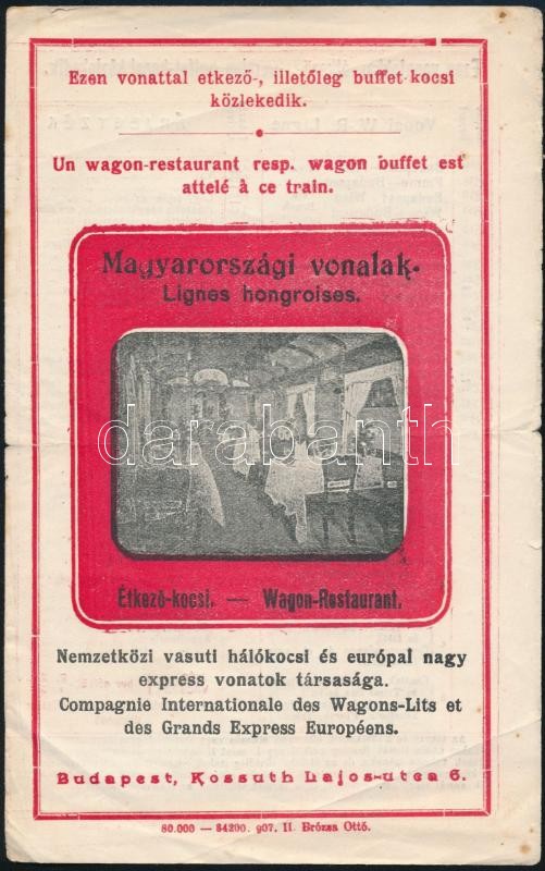 1907 Magyarországi vasútvonalakon közlekedő vasúti kocsik árlistája, s... https://www.darabanth.com/de/417-Fernauktion/417.0/Kunst-Dokumente-andere-Sammelgebiete/Drucksachen~500002/1907-Magyarorszagi-vasutvonalakon-kozlekedo-vasuti-kocsik-arlistaja-szakadassal~II2628873