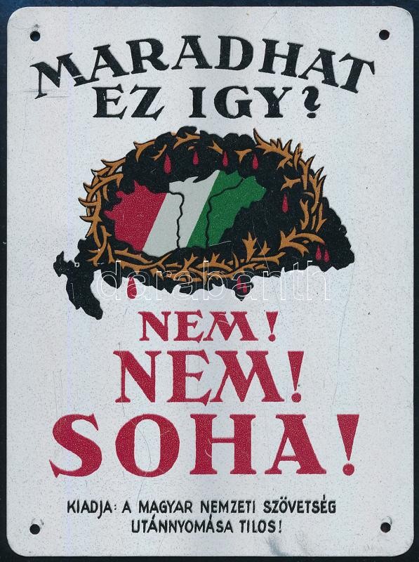 cca 1930 "Maradhat ez így? Nem, nem, soha!", kiadja a Magyar Nemzeti S... https://www.darabanth.com/de/417-Fernauktion/417.0/Kunst-Dokumente-andere-Sammelgebiete/Historische-Dokumenten-Handschriften~20/cca-1930-Maradhat-ez-igy-Nem-nem-soha-kiadja-a-Magyar-Nemzeti-Szovetseg-irredenta-fem-tC3~II2628908