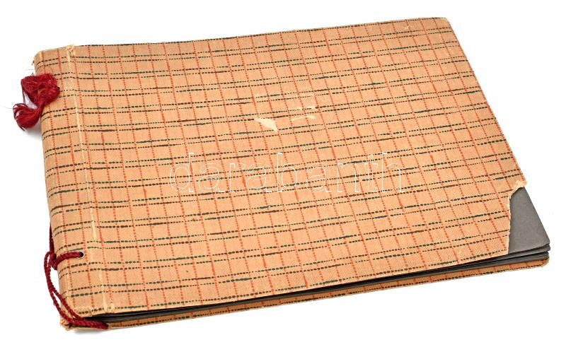 cca 1941 Cserneczky Béla alezredes fényképalbuma, kb. 35 db fotó és fotólap albumlapokra ragasztva, vegyesen katonai egyenruhában és civil családi fotókkal, néhányon kitüntetésekkel, egy másikon a margitszigeti tiszti kaszinó teraszán, első albumlapon házasságkötési értesítővel 1941-ből. Néhány fotó kijár, egyik teljesen sérült, klf. méretekben.