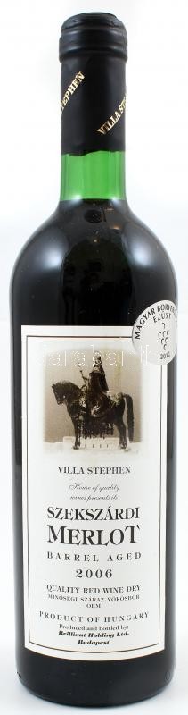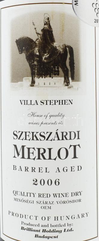 2006. Villa Stephen, Szekszárdi Merlot0,75 l., 13 %Vol. bontatlan pala... https://www.darabanth.com/de/417-Fernauktion/417.0/Kunst-Dokumente-andere-Sammelgebiete/Vintage-Weine-Getranke~16/2006-Villa-Stephen-Szekszardi-Merlot0-75-l-13-Vol-bontatlan-palack~II2630873