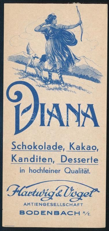 Diana csokoládé számolócédula https://www.darabanth.com/de/417-Fernauktion/417.0/Kunst-Dokumente-andere-Sammelgebiete/Werbungen~23/Diana-csokolade-szamolocedula~II2631558