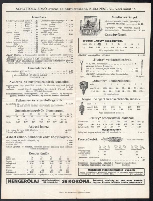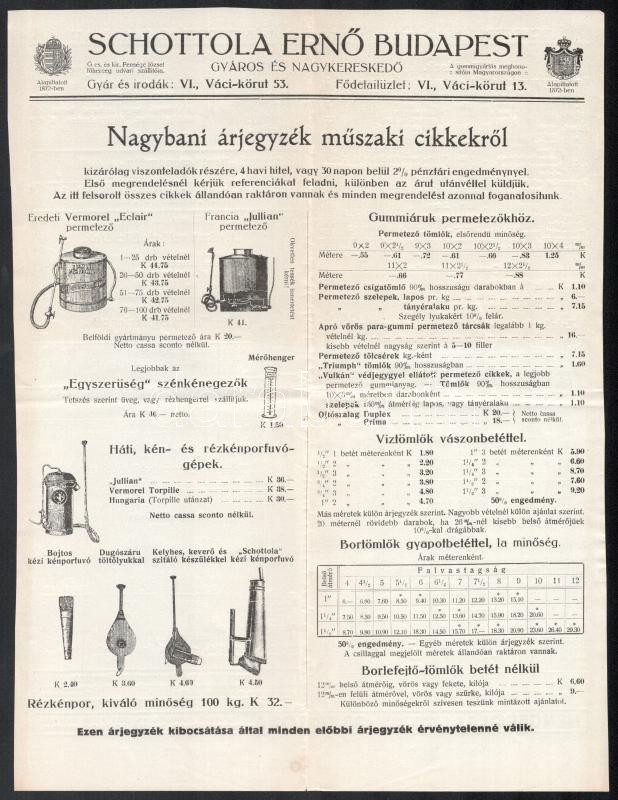 cca 1910 Scholotta Ernő permetezőgépesk képes árjegyzéke, nyomtatvány. https://www.darabanth.com/de/417-Fernauktion/417.0/Kunst-Dokumente-andere-Sammelgebiete/Werbungen~23/cca-1910-Scholotta-Erno-permetezogepesk-kepes-arjegyzeke-nyomtatvany~II2631957