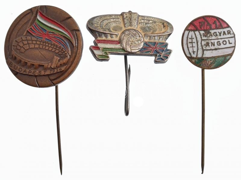 Beschreibung: 1954. "Magyarország-Anglia 7-1" 3xklf zománcozott jelvény az angolok elleni budapesti mérkőzés alkalmából T:1--2- közte zománchibás