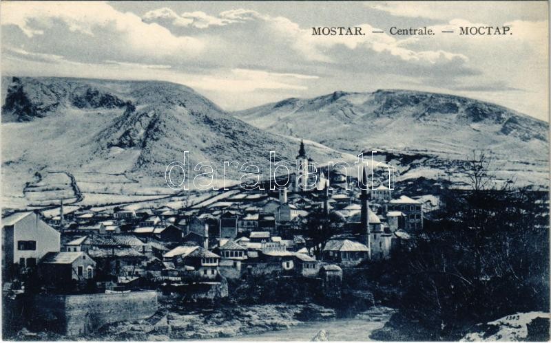 Mostar, Centrale / general view, mosque, church. Pacher & Kisic No. 97... https://www.darabanth.com/de/418-Fernauktion/418.0/Ansichtskarten/Bosnien-und-Herzegowina~1500063/Mostar-Centrale-general-view-mosque-church-Pacher-Kisic-No-974~II2177120