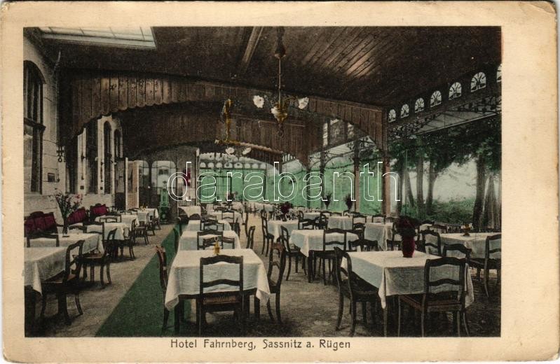 Sassnitz (Rügen), Hotel Fahrnberg / hotel, restaurant (EB) https://www.darabanth.com/de/418-Fernauktion/418.0/Ansichtskarten/Deutschland~1500111/Sassnitz-Rugen-Hotel-Fahrnberg-hotel-restaurant-EB~II2635685