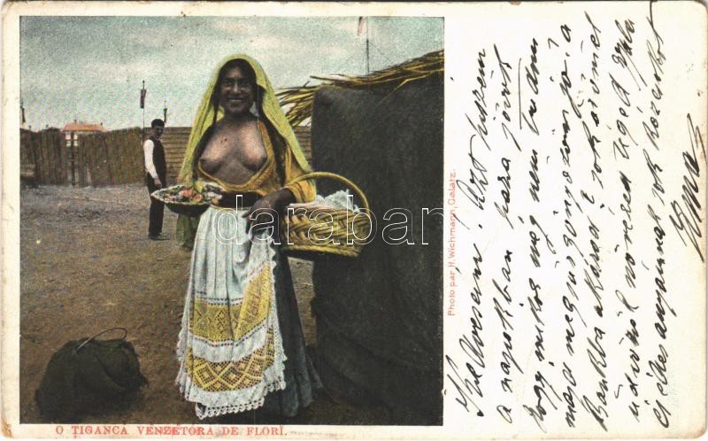 1906 O Tiganca venzetora de flori / Gypsy folklore, flower seller, hal... https://www.darabanth.com/de/418-Fernauktion/418.0/Ansichtskarten/Folklore~1500023/1906-O-Tiganca-venzetora-de-flori-Gypsy-folklore-flower-seller-half-nude-woman-Photo-H-Wichman~II2445272
