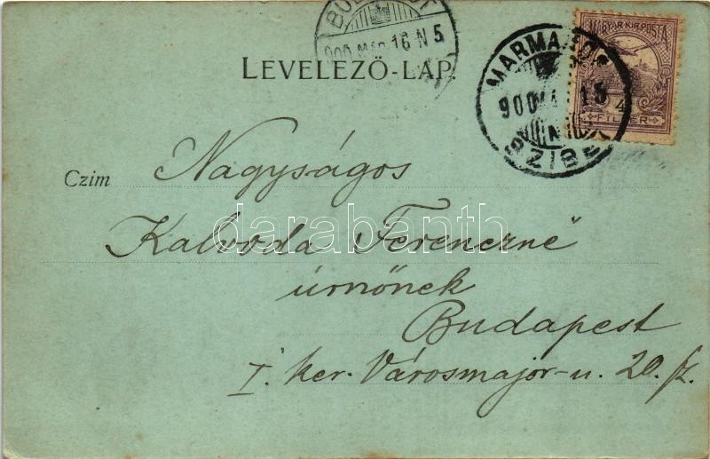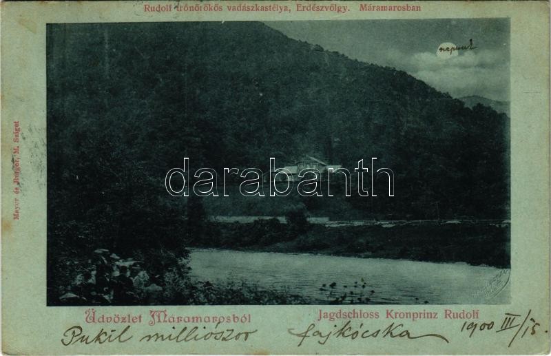 1900 Erdészvölgy, Kuzij (Lonka, Luh; Tisza-völgy, Máramaros); Rudolf trónörökös vadászkastélya a Tisza folyammal. Mayer és Berger kiadása / royal hunting castle in the valley, hunting lodge, Tisza river (fl)