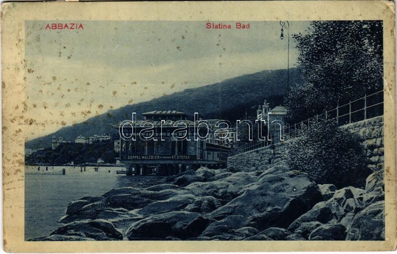1911 Abbazia, Opatija; Slatina Bad / strand, fürdő, Hunyadi János kese... https://www.darabanth.com/de/418-Fernauktion/418.0/Ansichtskarten/Kroatien~1500009/1911-Abbazia-Opatija-Slatina-Bad-strand-furdo-Hunyadi-Janos-keseruviz-reklamja-beach-~II2632835