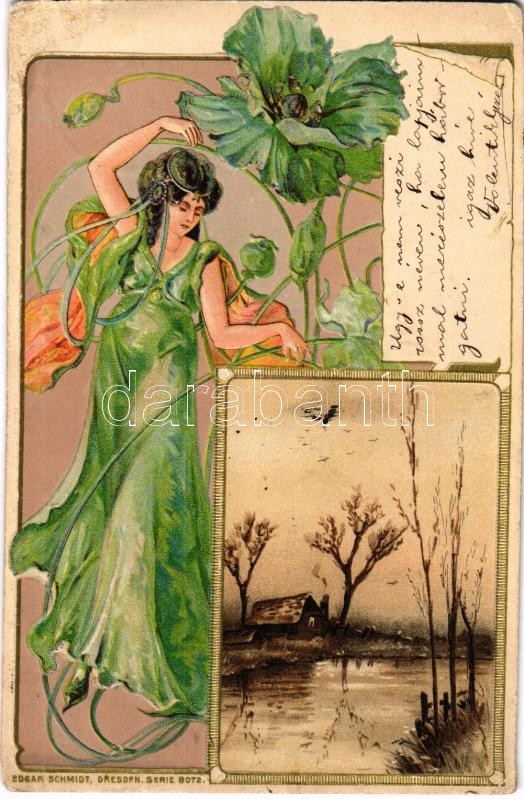 1901 Art Nouveau lady. Edgar Schmidt Serie 8072. Emb. litho (lyuk / pi... https://www.darabanth.com/de/418-Fernauktion/418.0/Ansichtskarten/Kunstlerkarten~1500040/1901-Art-Nouveau-lady-Edgar-Schmidt-Serie-8072-Emb-litho-lyuk-pinhole~II2641479