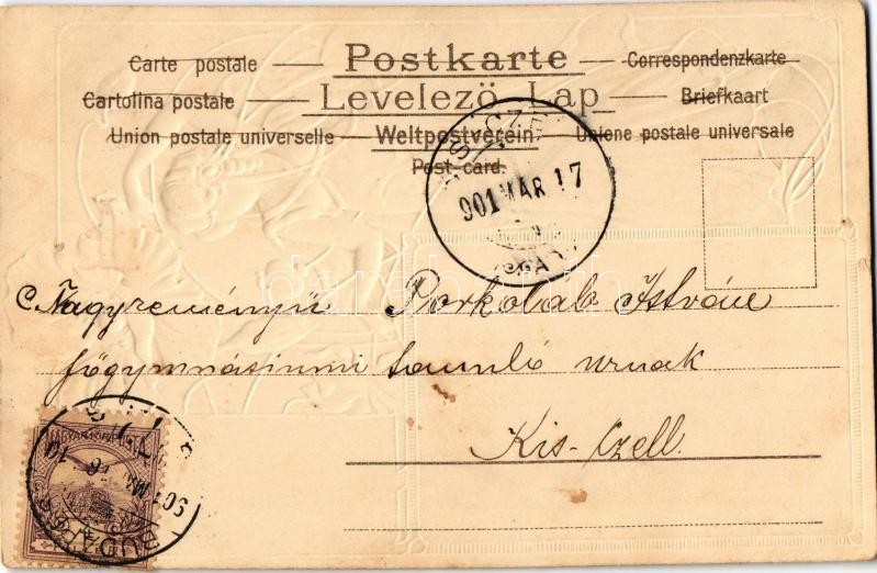 Beschreibung: 1901 Art Nouveau lady. Edgar Schmidt Serie 8072. Emb. litho (lyuk / pinhole)
