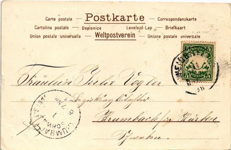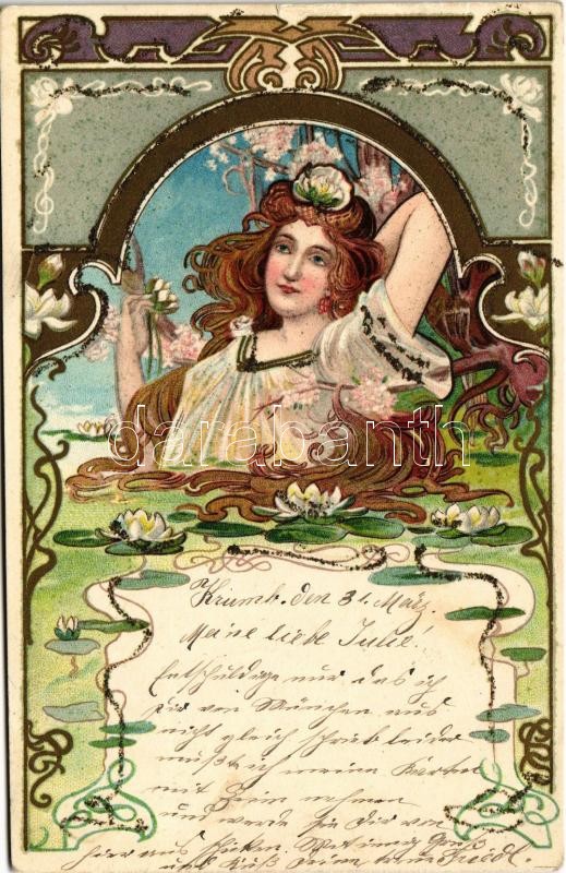 1901 Art Nouveau lady. Floral, litho (szakadás / tear) https://www.darabanth.com/de/418-Fernauktion/418.0/Ansichtskarten/Kunstlerkarten~1500040/1901-Art-Nouveau-lady-Floral-litho-szakadas-tear~II2641530