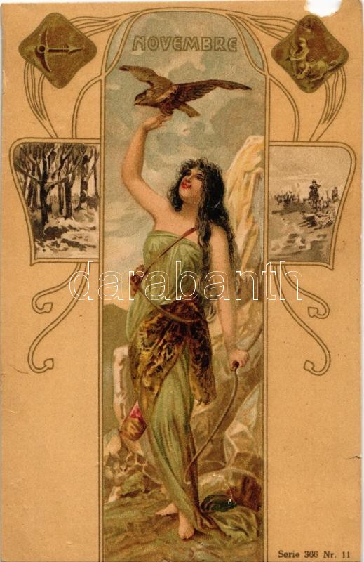Beschreibung: Novembre / Art Nouveau lady. Serie 366. Nr. 11. litho (b)