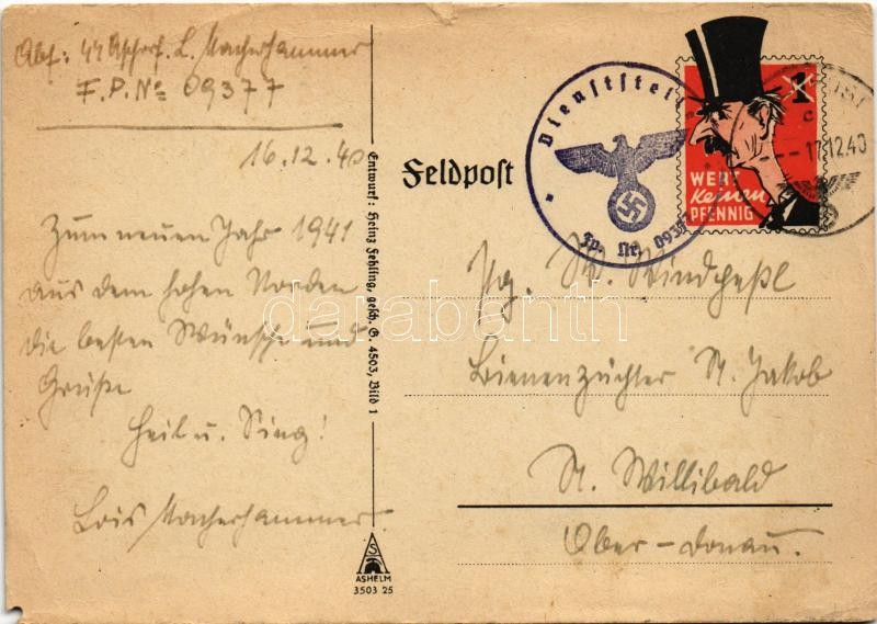 Beschreibung: 1940 Második világháborús német katonai újévi üdvözlet / WWII German military New Year greeting Feldpost (EM)