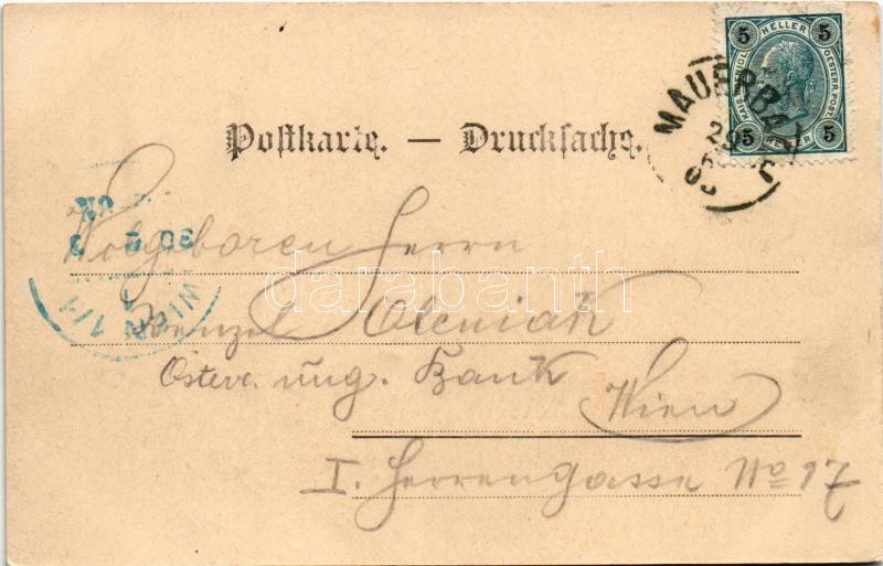 Beschreibung: 1903 Passauerhof, Gruss aus Alvis Gruber's Touristen-Gasthaus "Passauerhof" / tourist house, inn. Rud. Trebitsch Photograph (Wien) Art Nouveau, floral