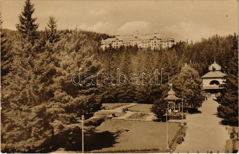 Beschreibung: 1952 Tátralomnic, Tatranská Lomnica (Magas-Tátra, Vysoké Tatry); Grand Hotel Praha szálloda / hotel, park (kis szakadás / small tear)
