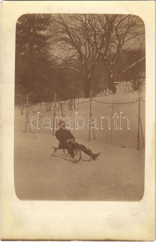Téli sport, szánkózó férfi / winter sport, sledding man. photo (EM) https://www.darabanth.com/de/418-Fernauktion/418.0/Ansichtskarten/Sport~1500045/Teli-sport-szankozo-ferfi-winter-sport-sledding-man-photo-EM~II2442703