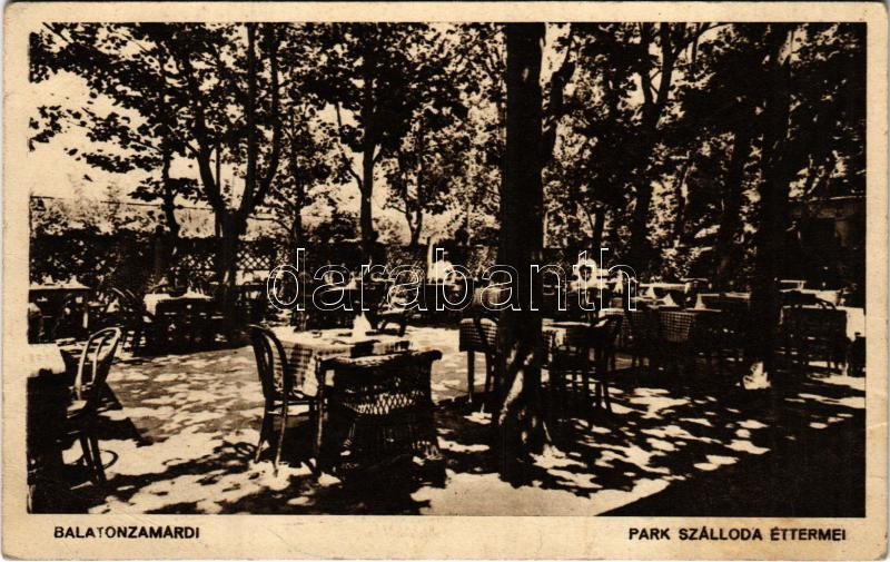 1940 Zamárdi, Balatonzamárdi; Park Szálloda éttermei, kert + "P.U. LEV... https://www.darabanth.com/de/418-Fernauktion/418.0/Ansichtskarten/Ungarn~1500005/1940-Zamardi-Balatonzamardi-Park-Szalloda-ettermei-kert-plus-PU-LEVELSZEKRENYBOL-fa~II2634910