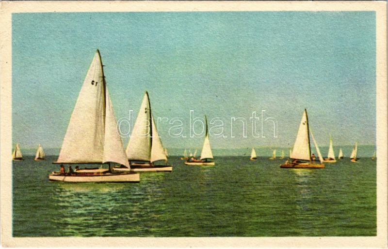 Beschreibung: 1960 Balaton, vitorlások. Képzőművészeti Alap Kiadóvállalat (EK)