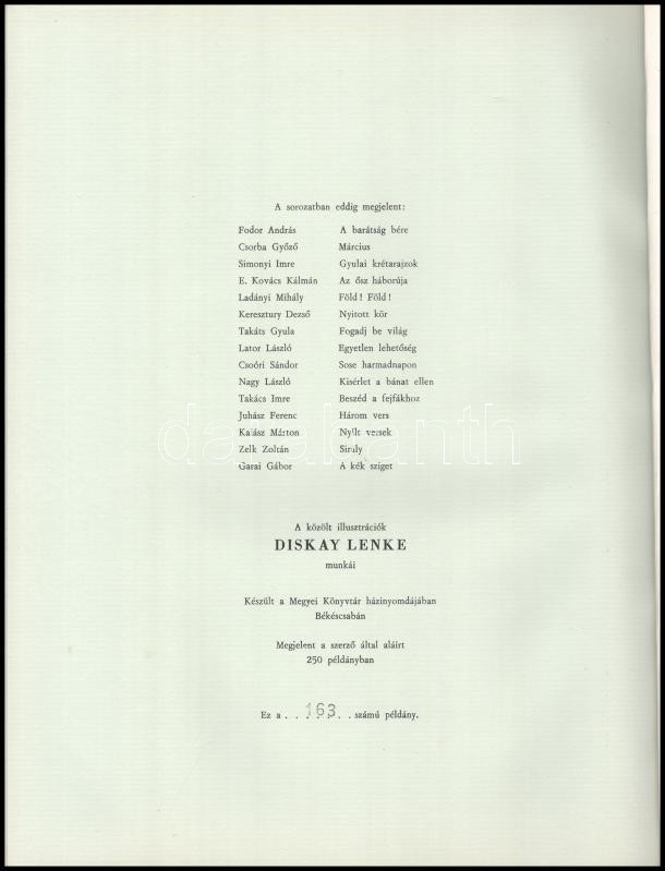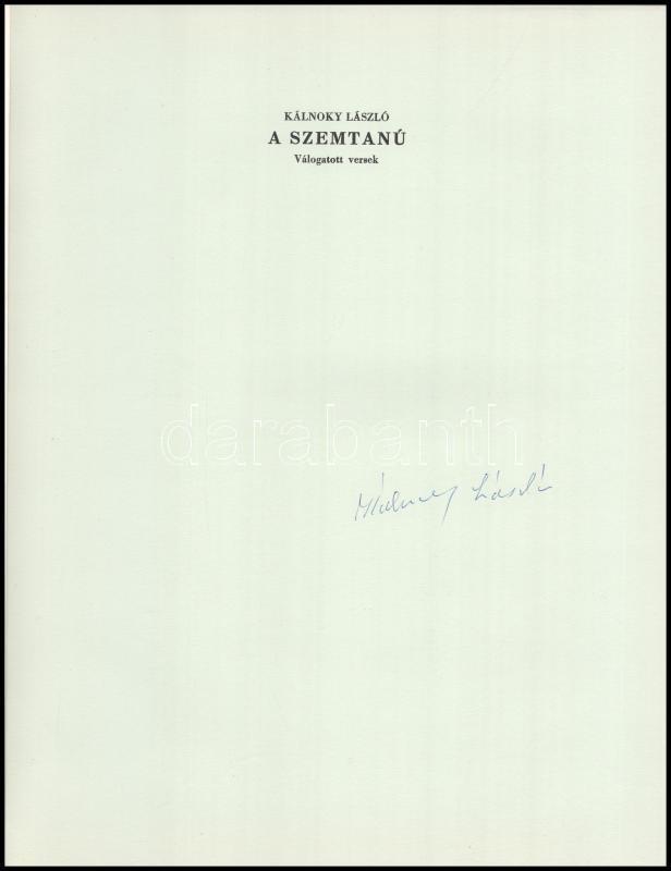 Kálnoky László: A szemtanú. Válogatott versek. Diskay Lenke illusztrác... https://www.darabanth.com/de/418-Fernauktion/418.0/Bucher/Bucher-Andere-kuriositaten~1000024/Kalnoky-Laszlo-A-szemtanu-Valogatott-versek-Diskay-Lenke-illusztracioival-A-szerzo-Kal~II2637820