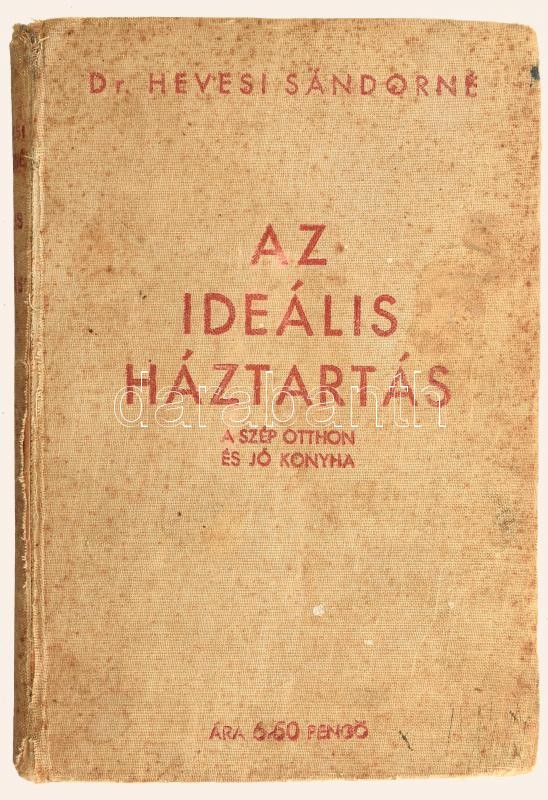 Hevesi Sándorné: Az ideális háztartás. A szép otthon és jó konyha. Bp., 1935, Színházi Élet. Kiadói egészvászon-kötés, kopott, foltos borítóval, sérült gerinccel, ceruzás jegyzetekkel, receptekkel