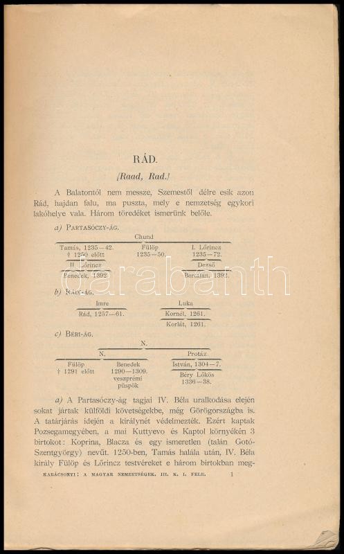 Dr. Karácsonyi János: A magyar nemzetségek a XIV. század közepéig. III. köt. első fele. Bp., 1901, Magyar Tudományos Akadémia, 254+(1) p. Oldalszámozáson kívül kihajtható mellékletekkel. Kiadói papírkötés, sérült, javított, a borítón kisebb hiány.
