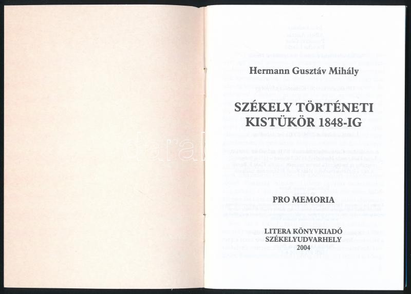 Hermann Gusztáv Mihály: Székely történeti kistükör 1848-ig. Székelyudv... https://www.darabanth.com/de/418-Fernauktion/418.0/Bucher/Bucher-Geschichte~1000009/Hermann-Gusztav-Mihaly-Szekely-torteneti-kistukor-1848-ig-Szekelyudvarhely-2004-Litera-~II2637257