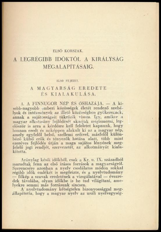 Holub József: A magyar alkotmánytörténelem vázlata. I. köt.: Középkor. Első füzet. Pécs, 1943, szerzői magánkiadás, 105 p. Kiadói papírkötés, a borítón néhány kisebb folttal.