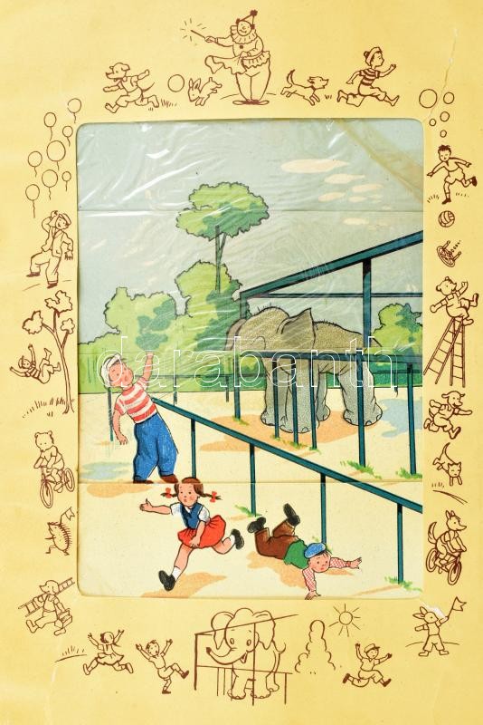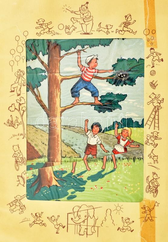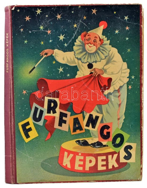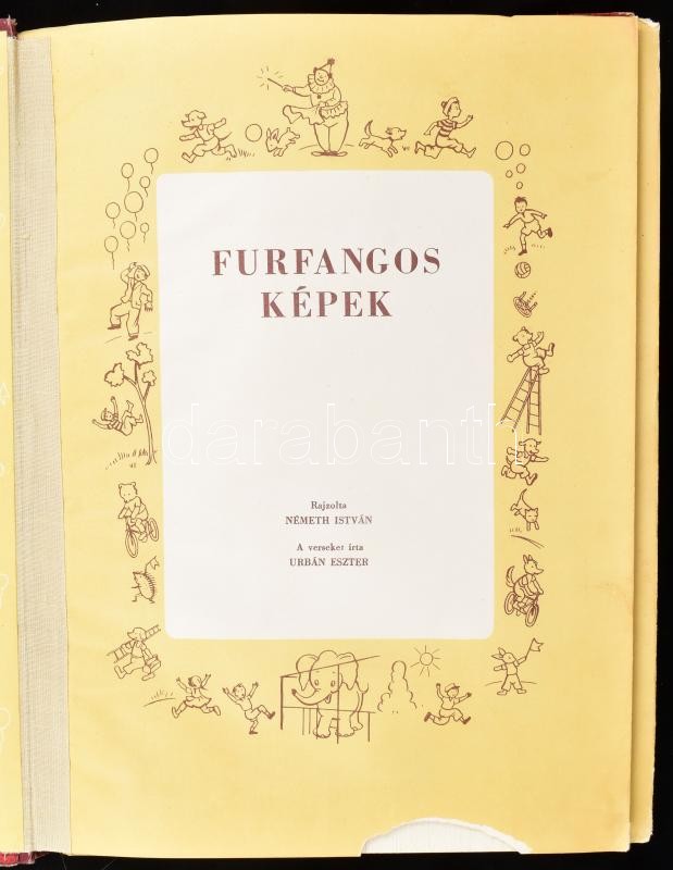 Németh István, Urbán Eszter: Furfangos képek. (Bp.), é.n., (Állami-ny.). Hét színes, kihúzható, mozgatható illusztrációval. Kiadói illusztrált félvászon-kötés, kissé sérült, kopott borítóval, sérült, ragasztott lapokkal.