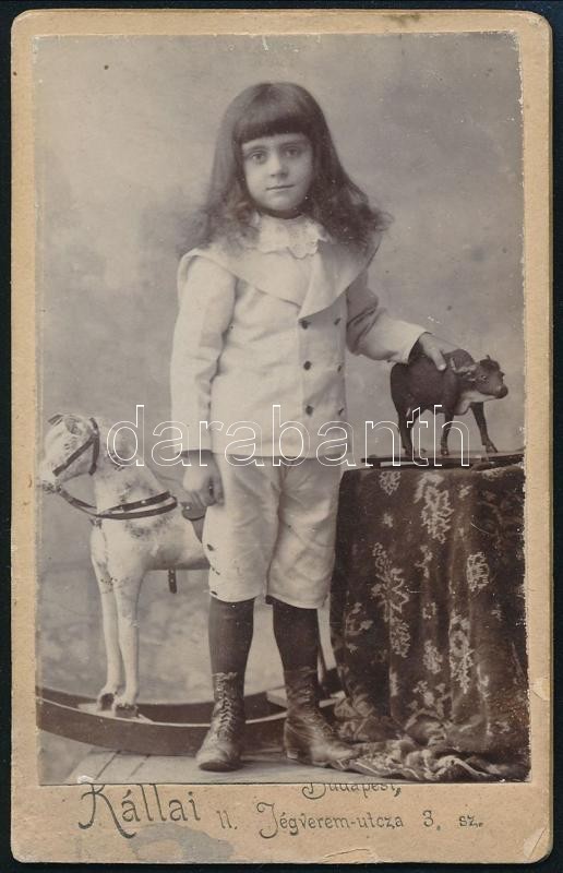 cca 1910 Kislány hintalóval, keményhátú fotó Kállai műterméből, 10,5×6... https://www.darabanth.com/de/418-Fernauktion/418.0/Fotografie/Foto~500021/cca-1910-Kislany-hintaloval-kemenyhatu-foto-Kallai-mutermebol-10-5C3976-5-cm~II2636486