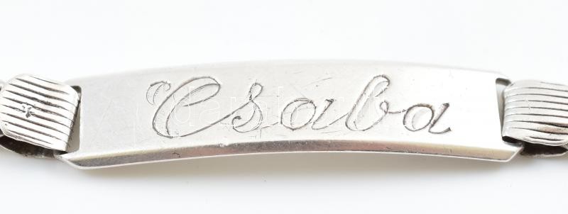 Beschreibung: Ezüst (Ag) Férfi karlánc. Jelzett. Csaba felirattal. Nettó: 17,5 g, h: 23 cm