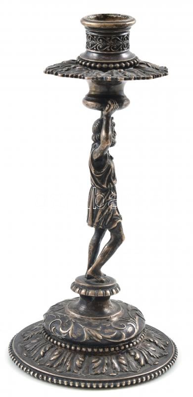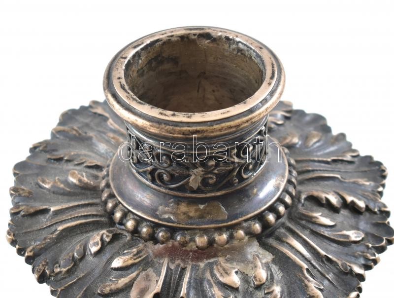 Beschreibung: Ezüst (Ag) gyertyatartó, apró sérülésekkel, jelzés nélkül, m: 20 cm, nettó: 259g