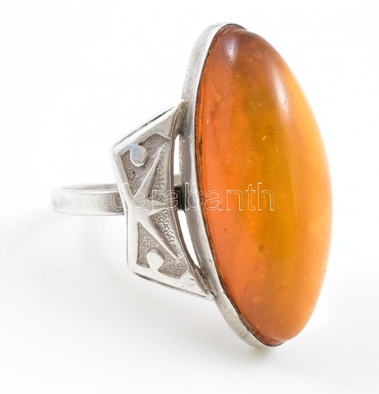 Ezüst (Ag) gyűrű, borostyánnal ékítve, jelzett, m: 50, bruttó: 3,7g https://www.darabanth.com/de/418-Fernauktion/418.0/Juwellen-und-Kunstobjekte-aus-Edelmetall/Juwellen-und-Kunstobjekte-aus-Edelmetall~1000028/Ezust-Ag-gyuru-borostyannal-ekitve-jelzett-m-50-brutto-3-7g~II2631397