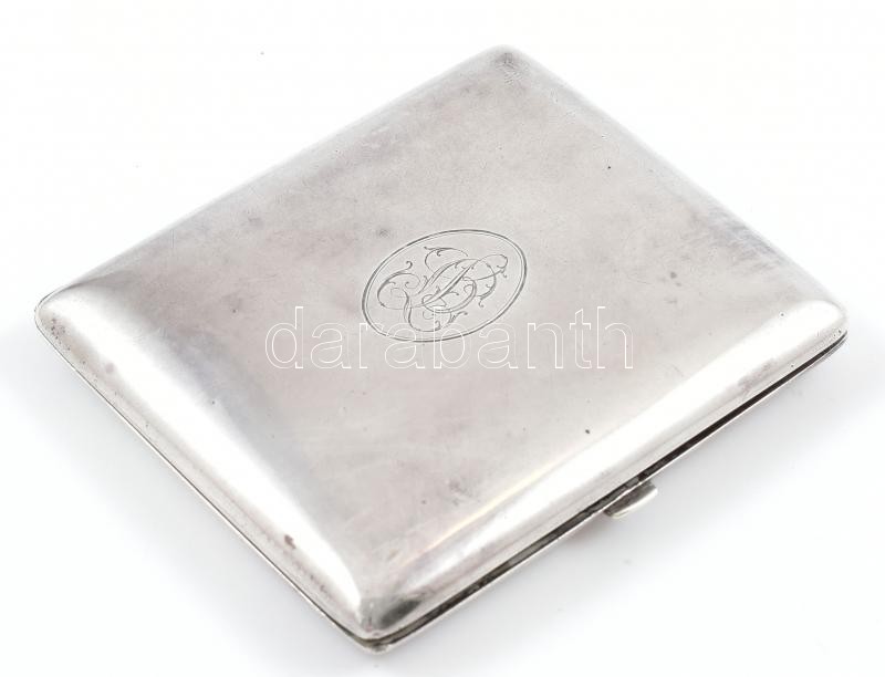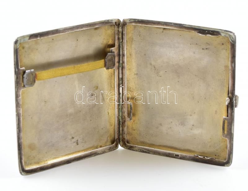 Beschreibung: Ezüst (Ag) vésett cigarettatárca, apró horpadásokkal, nehezen záródik, 9x7,5cm, jelzett, nettó: 113 g
