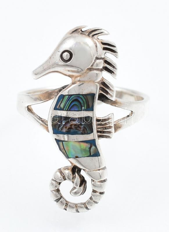 Ezüst(Ag) csikóhalas gyűrű gyöngyház berakással, jelzett, méret: 54, b... https://www.darabanth.com/de/418-Fernauktion/418.0/Juwellen-und-Kunstobjekte-aus-Edelmetall/Juwellen-und-Kunstobjekte-aus-Edelmetall~1000028/EzustAg-csikohalas-gyuru-gyongyhaz-berakassal-jelzett-meret-54-brutto-4-2-g~II2634295