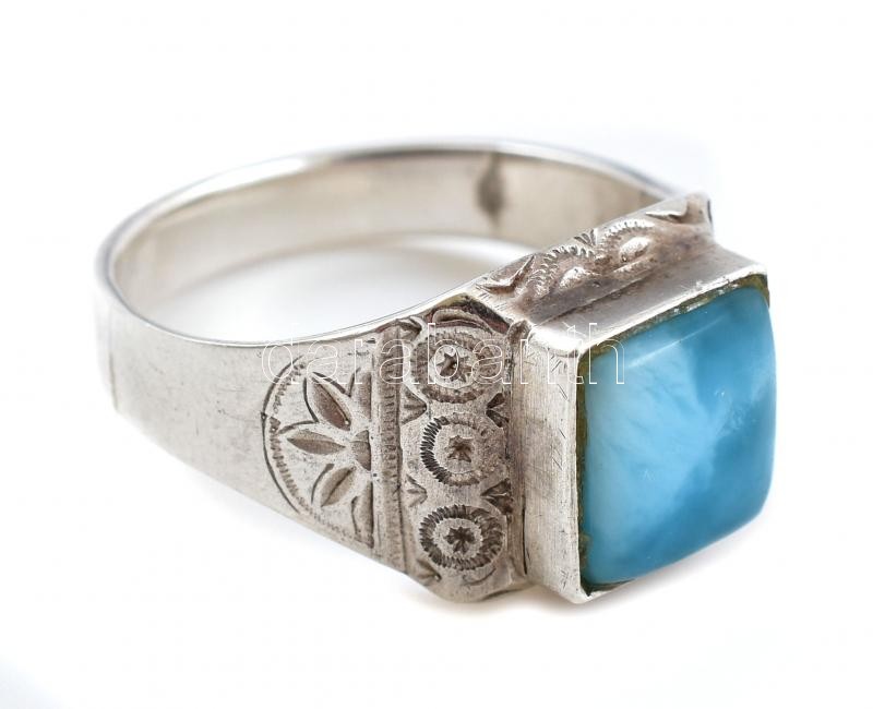 Ezüst(Ag) gyűrű kék kővel, jelzés nélkül, méret: 61, bruttó: 8 g https://www.darabanth.com/de/418-Fernauktion/418.0/Juwellen-und-Kunstobjekte-aus-Edelmetall/Juwellen-und-Kunstobjekte-aus-Edelmetall~1000028/EzustAg-gyuru-kek-kovel-jelzes-nelkul-meret-61-brutto-8-g~II2640052