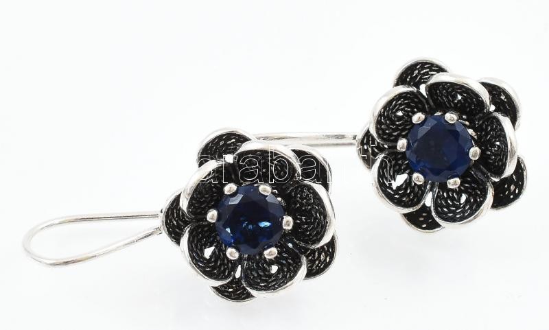 Beschreibung: Ezüst(Ag) kék köves, virágos fülbevalópár, jelzett, d: 2 cm, bruttó: 6,5 g