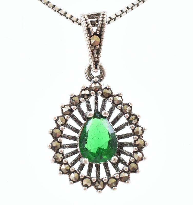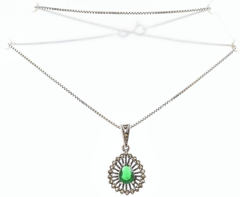 Beschreibung: Ezüst(Ag) venezianer nyaklánc, zöld köves medállal, jelzett, h: 36 cm, bruttó: 4,5 g