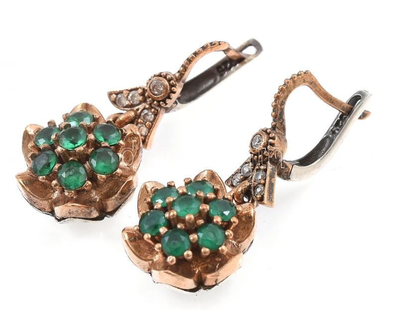 Beschreibung: Ezüst(Ag) virágos fülbevalópár zöld kövekkel, jelzett, h: 3 cm, bruttó: 9,3 g