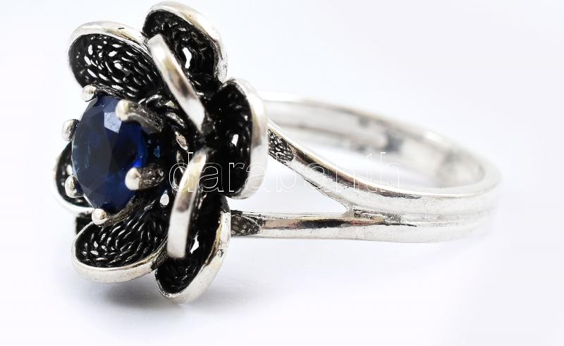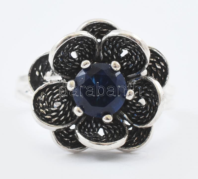 Beschreibung: Ezüst(Ag) virágos gyűrű kék kővel, jelzett, méret: 56, bruttó: 4,9 g