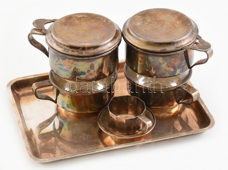 Két személyes kávéfőző készlet, ezüstözött, jelzett, kopásnyomokkal. https://www.darabanth.com/de/418-Fernauktion/418.0/Kunst-Dokumente-andere-Sammelgebiete/Antik~500008/Ket-szemelyes-kavefozo-keszlet-ezustozott-jelzett-kopasnyomokkal~II2630934