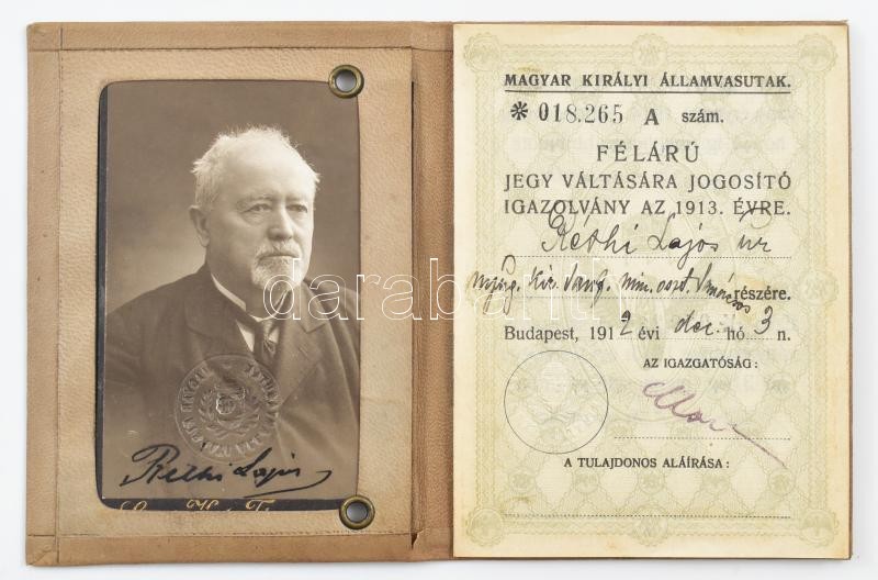1912 Réthi Lajos nyug. kir. tanácsos fényképes félárú jegy váltására j... https://www.darabanth.com/de/418-Fernauktion/418.0/Kunst-Dokumente-andere-Sammelgebiete/Dokument~500018/1912-Rethi-Lajos-nyug-kir-tanacsos-fenykepes-felaru-jegy-valtasara-jogosito-igazolvan~II2641914