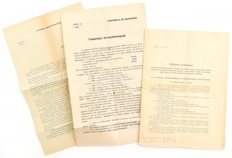 1869, 1873, 1913 Katonai akadémiák és reáliskolákba való felvételre szóló felhívások. A fiumei haditengerészeti akadémiába való felvétel szabályai, kérvényminták 26 p. Össz 3 nyomtatvány