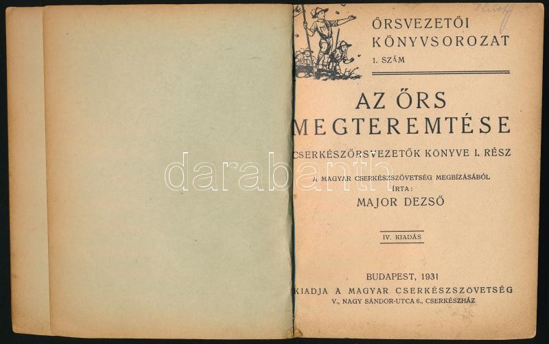 Major Dezső: Az örs megteremtése. Cserkészörsvezetők könyve I. rész. Őrsvezetői könyvsorozat 1. sz. Bp., 1931., Magyar Cserkészszövetség. Kopott, kissé foltos félvászon-kötés, egy szakadt lappal.